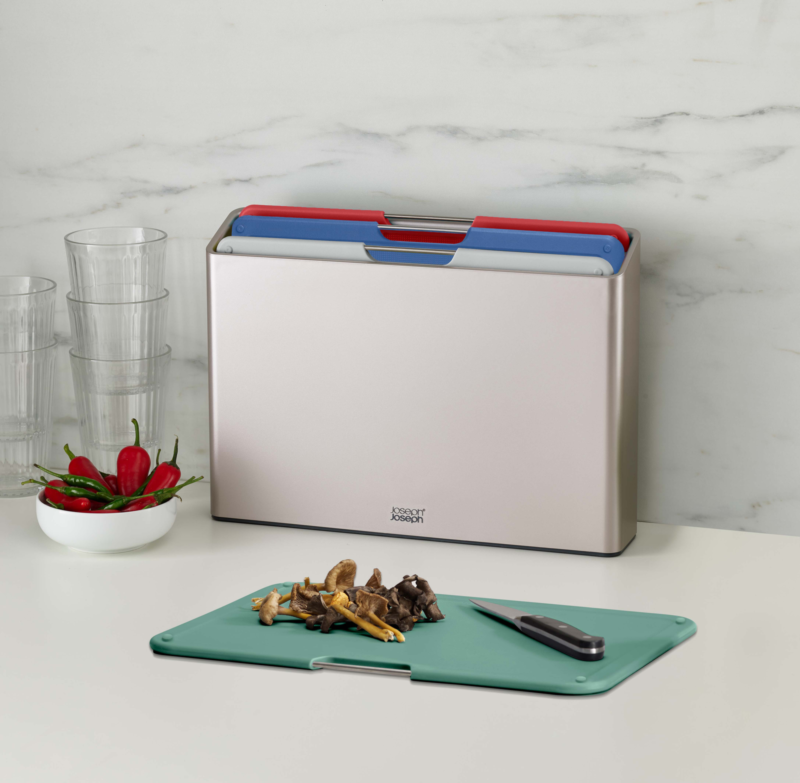 Набор разделочных досок Joseph Joseph FOLIO из 5 предметов — отлично сочетается с любым интерьером, удобен в использовании и не занимает много места;